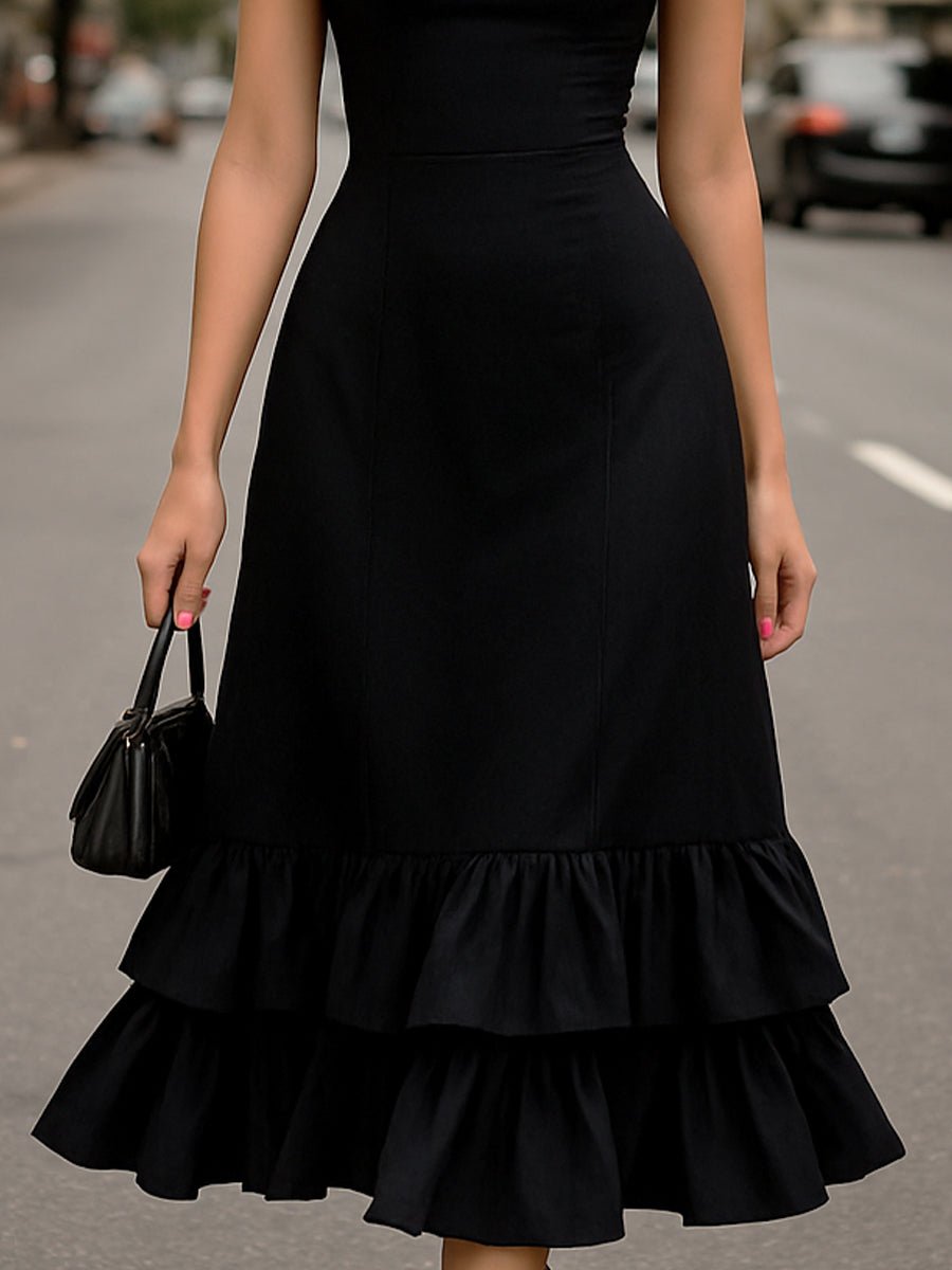 Mooyius presents the black midi dress features a flattering square neckline and unique ruched straps that add a feminine twist. The cinched waist flows into a beautifully tiered ruffled hem, offering movement and drama with every step. Ideal for garden parties, dinner dates, or elegant day events, it’s a timeless staple with a touch of playful romance.